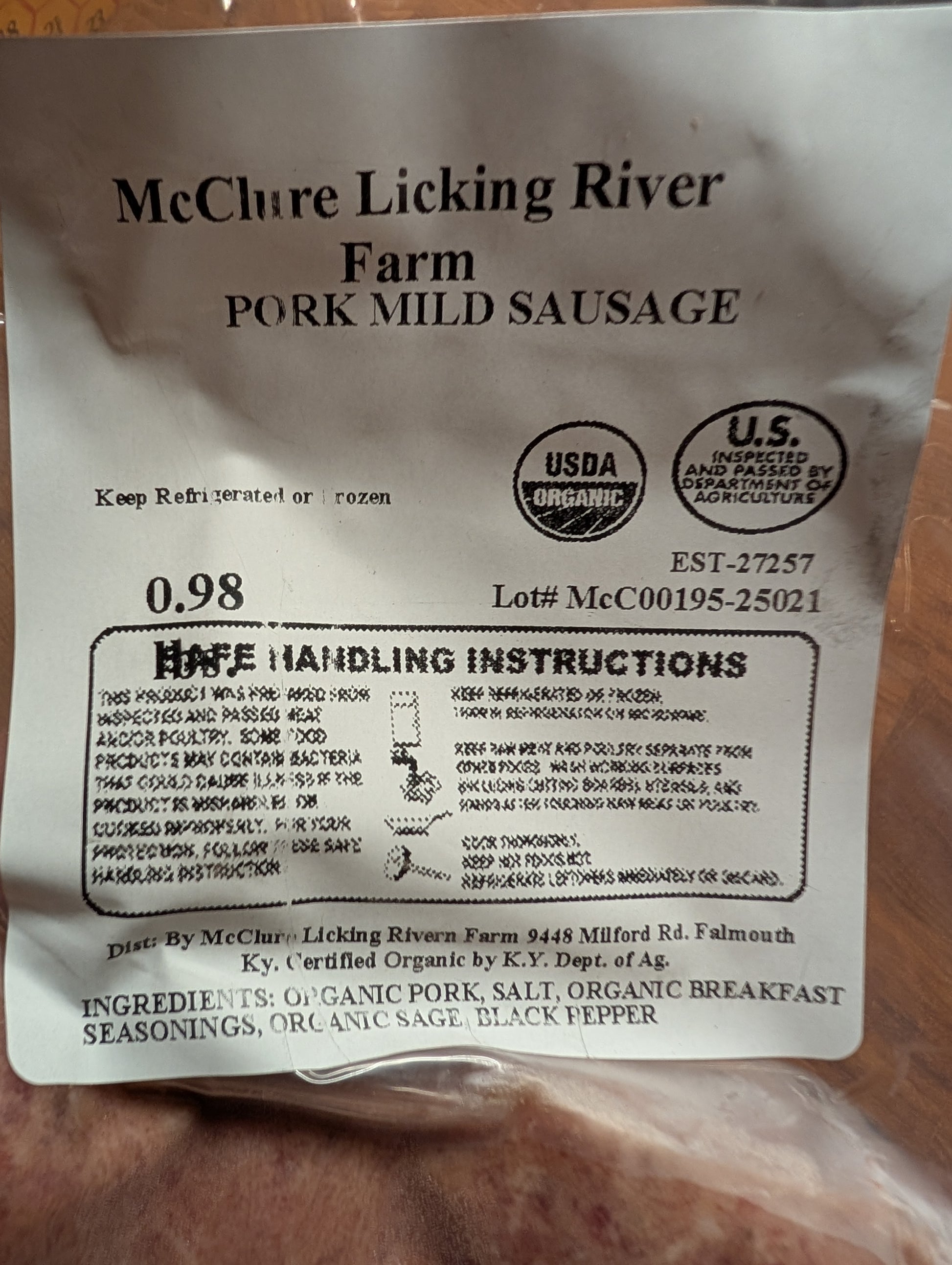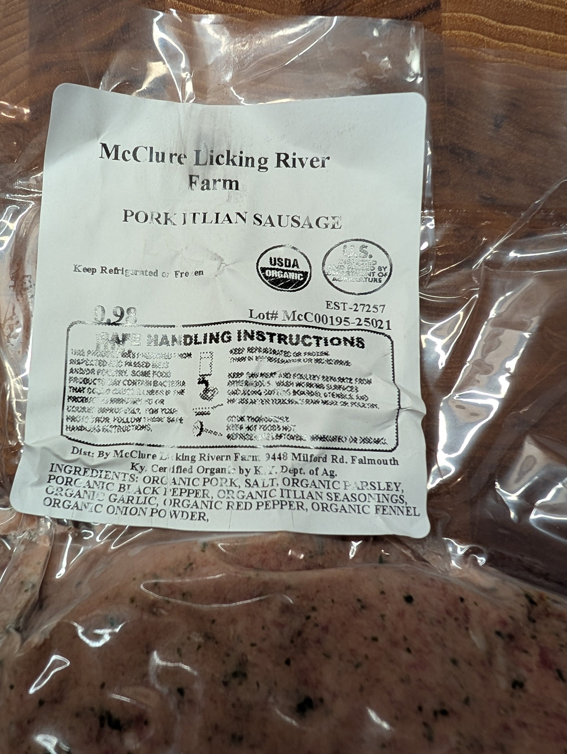 Sausage Organic Ground Mangalista Pasture raised