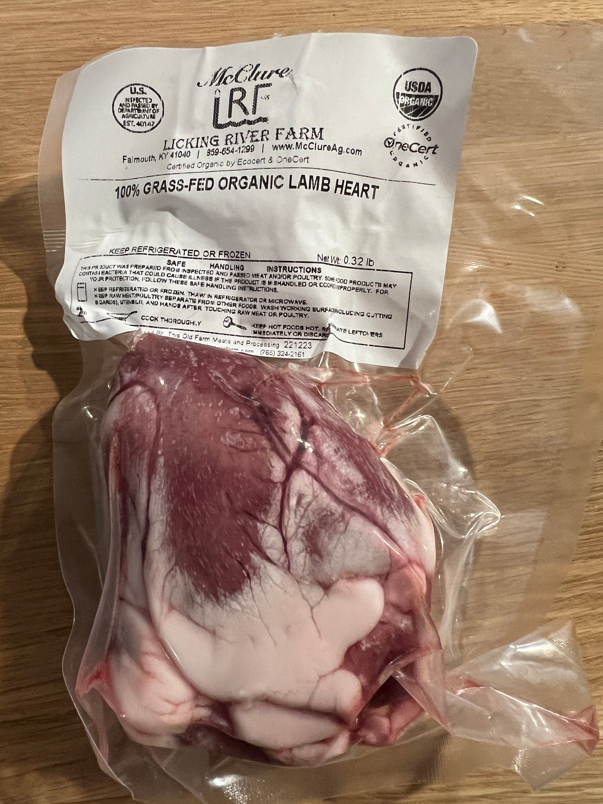 Our Lambs are raised naturally and organically on regenerative Certified organic pastures all season. We never lamb out of season. All lambs are born in the spring. This is for one Lamb heart. Lamb is a good source of protein, the contains high levels of essential amino acids, it is a rich source of vitamin B12 and iron, and it's also a good source of zinc, selenium, and niacin. Sometimes called “land salmon,” referring to the healthy omega 3:6 profile that both foods share. Grass-fed and finished lamb has the healthiest fatty acid/omega 3:6 profile of any commonly eaten land animal. It is also high in vitamins B12 and B3, selenium, zinc, and protein.