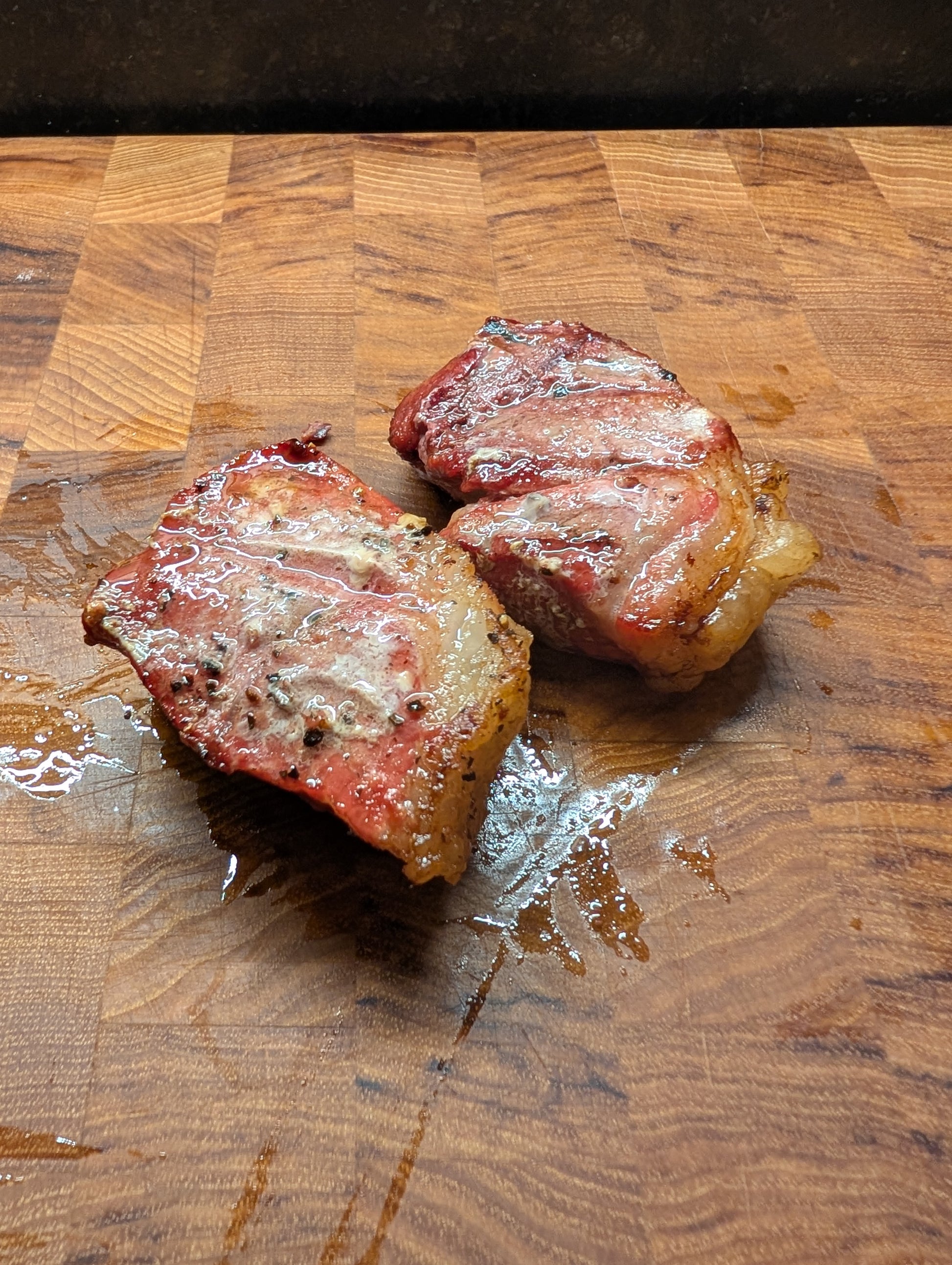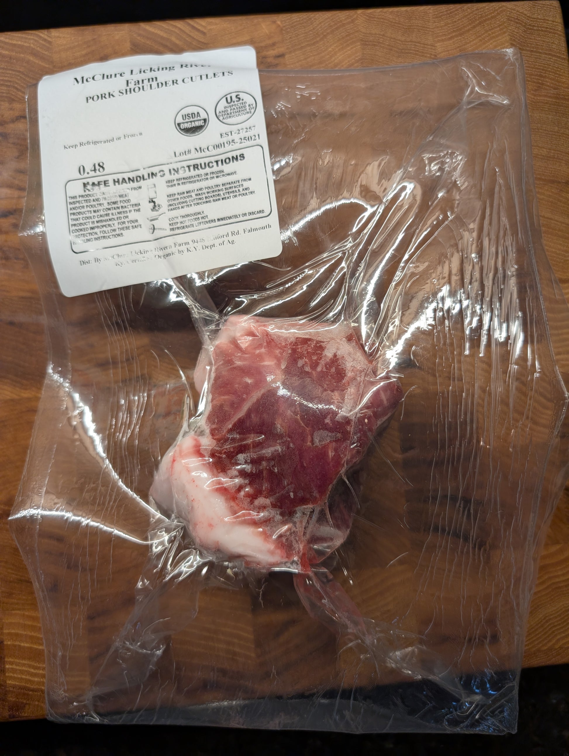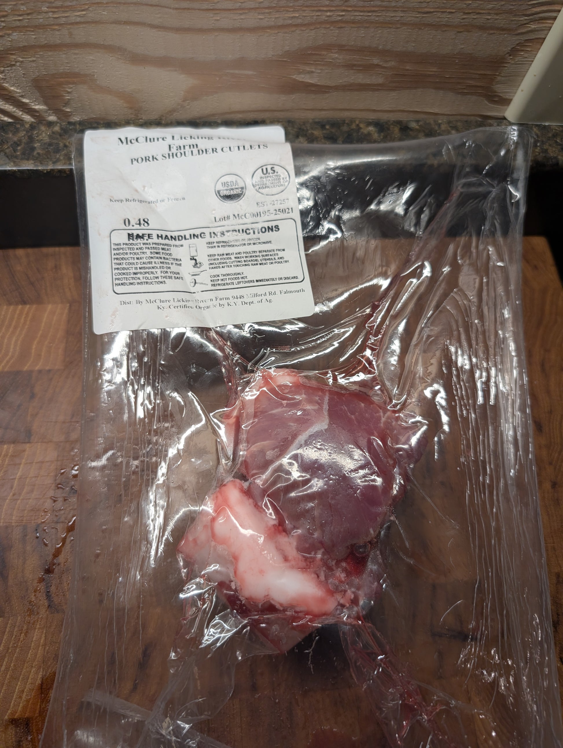 This is a Mangalista shoulder butt steak shoulder cutlets. This cut is similar to a filet minion cut of beef. We often tell people if you served our pork and did not tell your guest what meat it is most would think they are eating a beef steak . Our Pastured Mangalistas are given a natural environment to forage for nuts and nutrient-rich forage. We feed them an organic, non-GMO mix of grains and do not give them corn or soy.