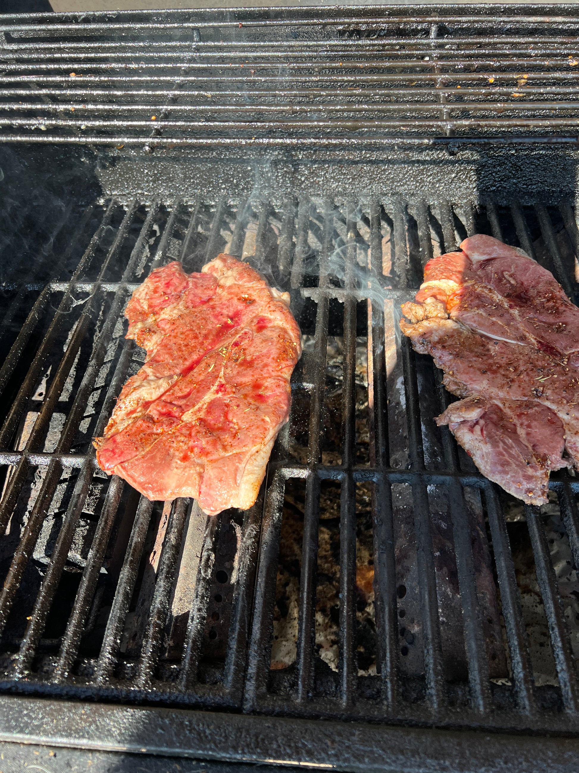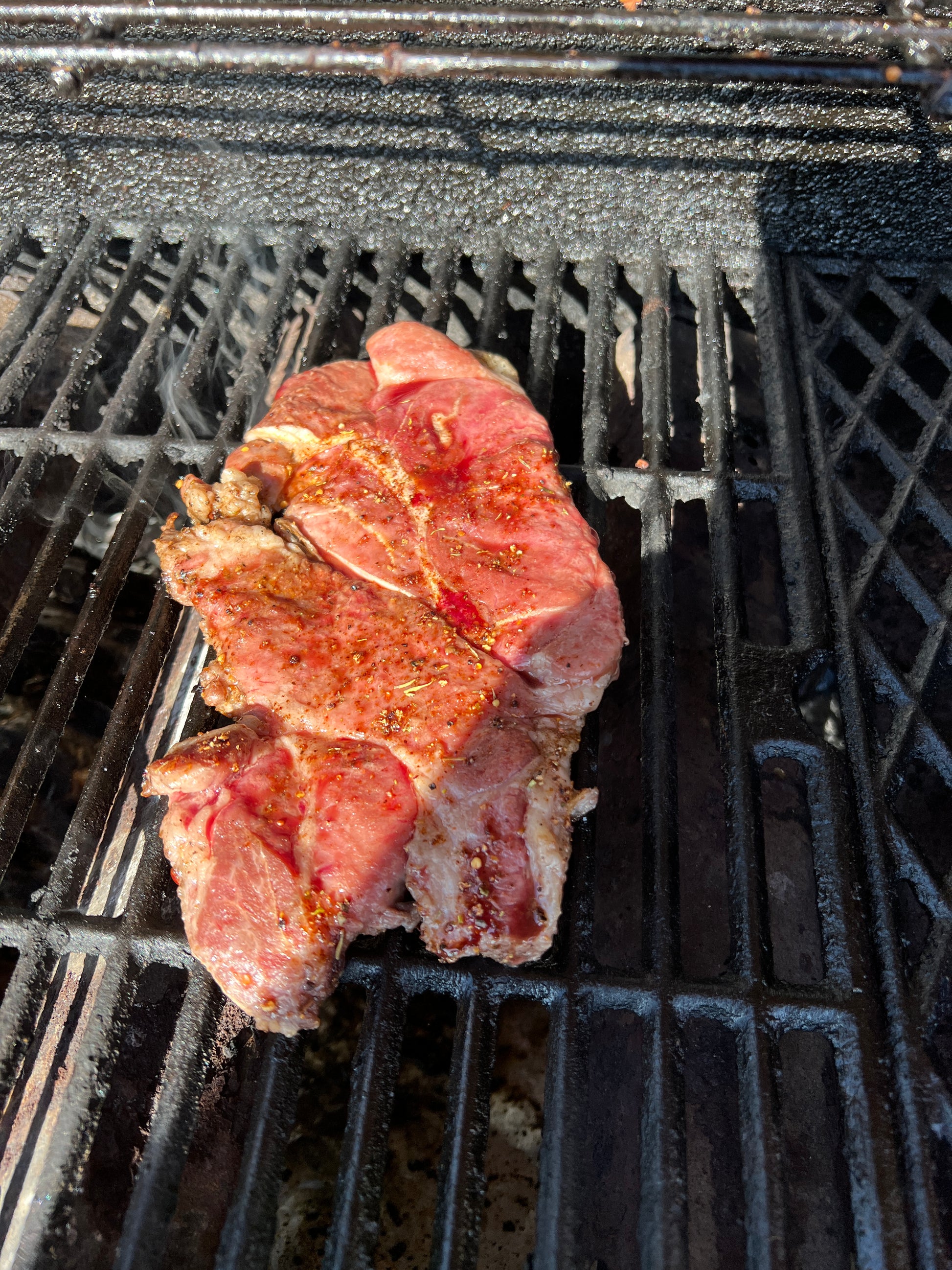 This is a Mangalista shoulder steak, which is 2 1" thick steak per pack and is approximately 1 pound. These are thinly cut from the shoulder in the same area as the Coppa Roast, which is perfect with bone and has an amazing flavor. Our Pastured Mangalistas are given a natural environment to forage for nuts and nutrient-rich forage.